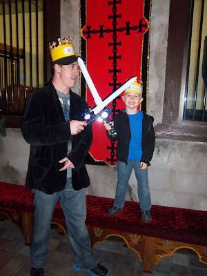 It's kinda dark, but here is our picture with the king. Teague was not about to put a crown on his head or get close to the king, so this picture is a perfect representation of his night.